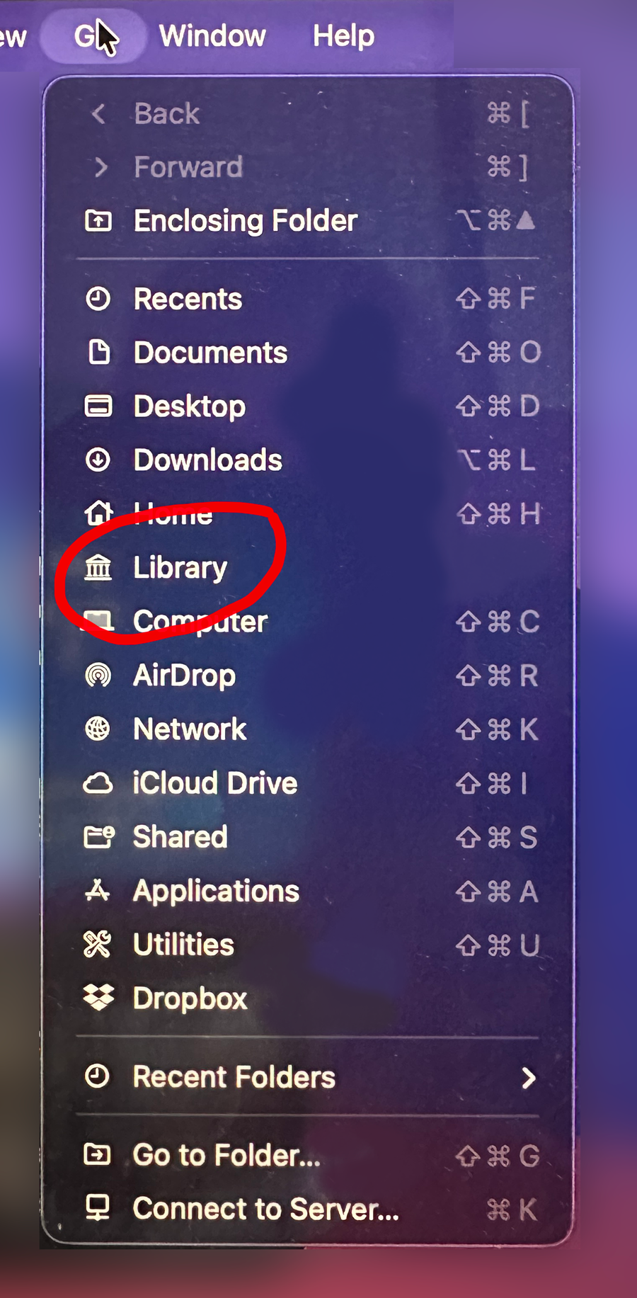 6. Access the Mail library: On the Desktop, hold down the Option (⌥) key to reveal hidden menu items, then navigate to: Go → Library