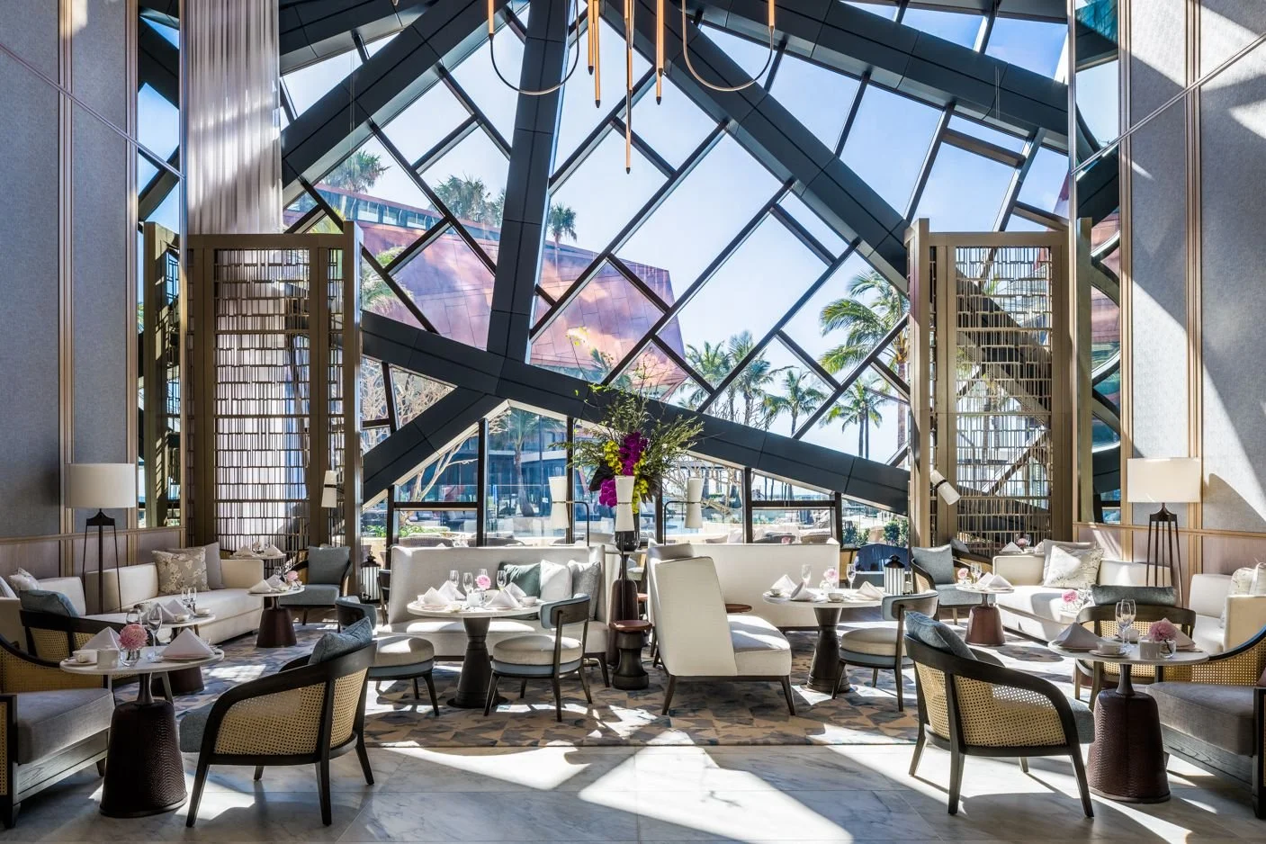 “With soaring ceilings and one of the most impressive backlit bars we’ve ever set eyes upon, (Palm Court) is the perfect backdrop for a cocktail or a light bite”